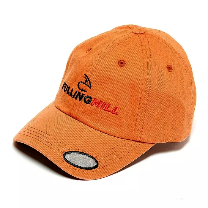 Orange canvas cap with dark underbill to prevent glare and built in velcro flypatch for convenient fly storage and drying.