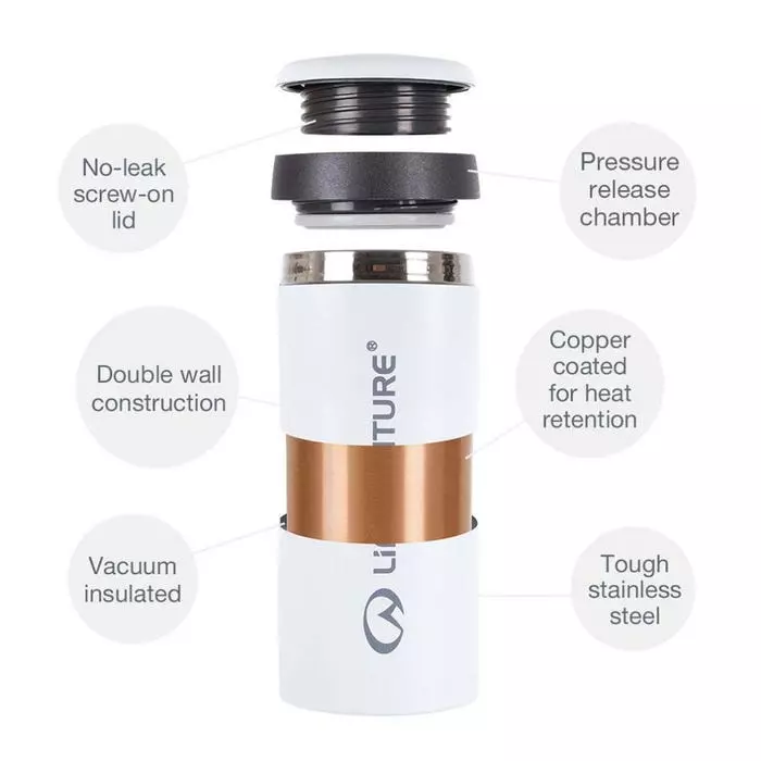 A thermally induced vacuum ensures that drinks hold their temperature and can be enjoyed hours later.