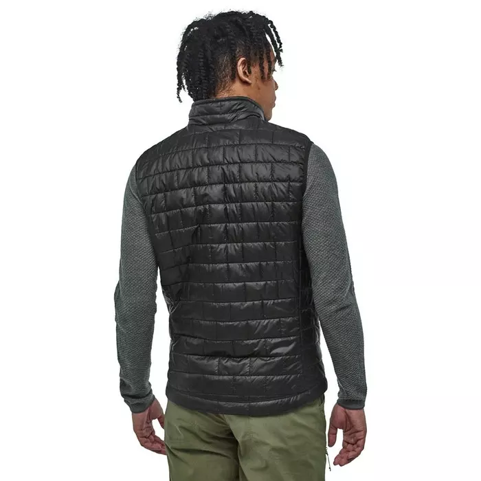 The vest has a shaped fit and a soft, wicking interior storm flap and zipper garage for chin comfort. Other fine points include a drawcord hem, two zippered handwarmer pockets and an internal chest pocket (with clip-in loop) that doubles as a stuffsack.