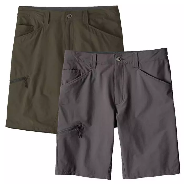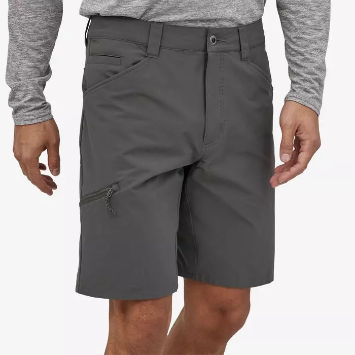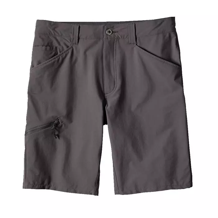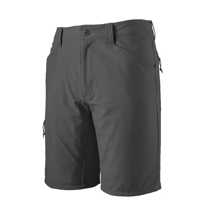 - Curved waistband follows the natural shape of the hips and provides a contoured fit to help keep shorts in place during movement; metal-button closure with zip fly