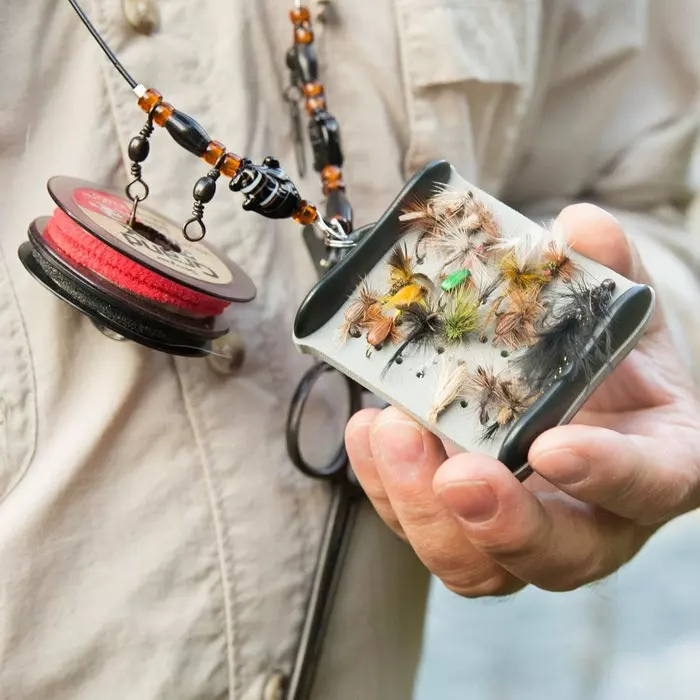 Never before has it been easier to see and access your flies. It holds a lot of flies securely in custom micro slit foam and protected from damage or loss by its patented exposed ribs. Worn on it?s zinger, or a lanyard, makes it exceptionally easy to use. It?s designed to be worn on vests or clothing, chest / sling packs. For use on lanyards or D-rings an alternative attachment cable is provided.